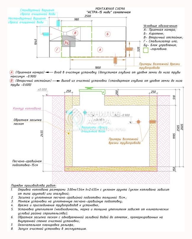 Насос для откачки: нет (самотечный сброс)